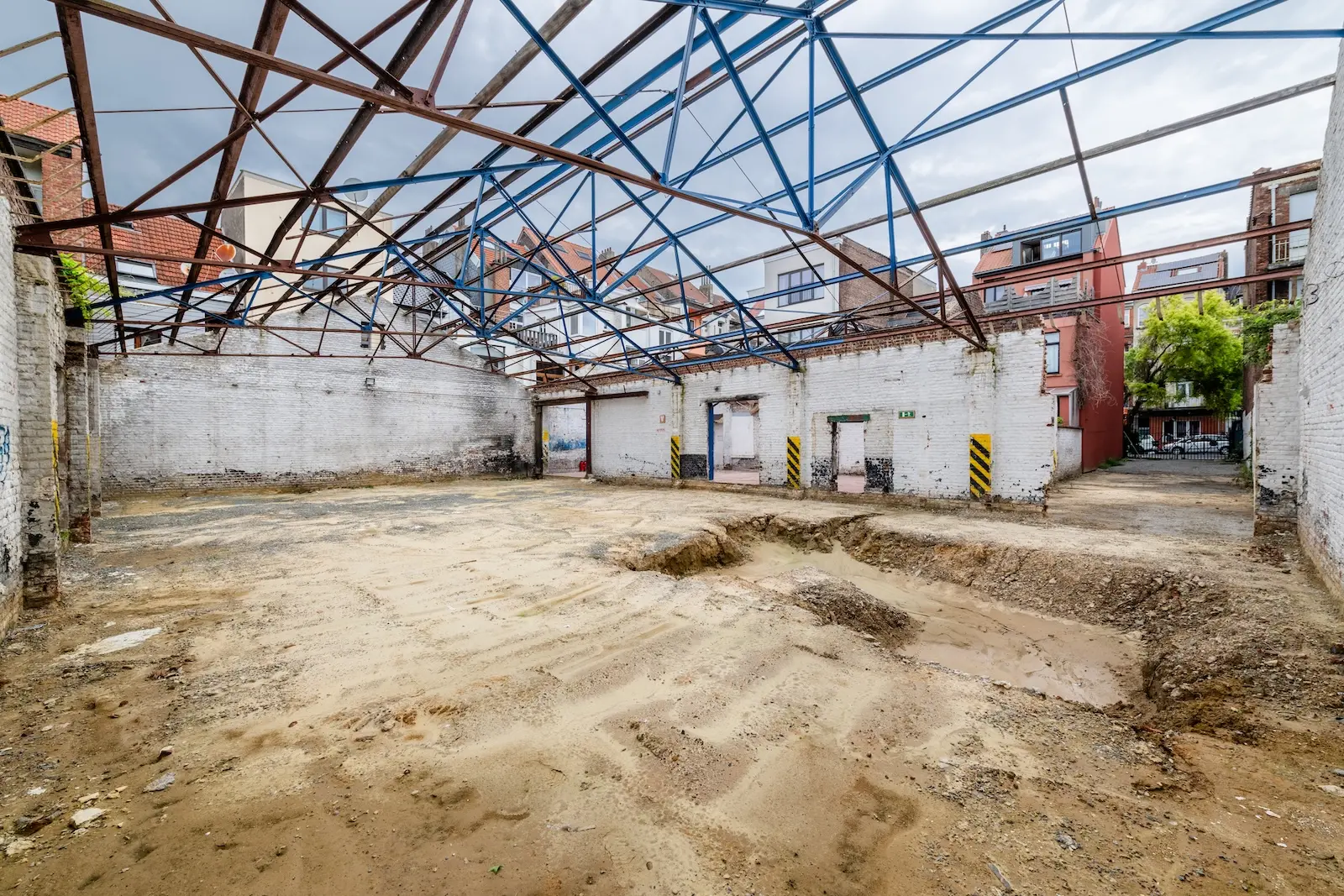 Project to transform a 750 m² car park into a real estate development of 900 m², comprising 4 apartments and 3 houses. The project involves the demolition of the existing car park and the construction of a new building with a mix of residential units.